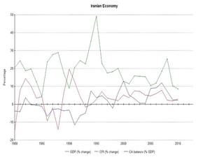 ما بين عام 2002 و2006، كان معدل التضخم في إيران متأرجحاً بين 12 و16%.[59]