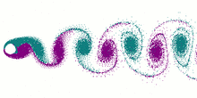 In 1883, scientist Osborne Reynolds conducted a fluid dynamics experiment involving water and dye, where he adjusted the velocities of the fluids and observed the transition from laminar to turbulent flow, characterized by the formation of eddies and vortices.[5] Turbulent flow is defined as the flow in which the system's inertial forces are dominant over the viscous forces. This phenomenon is described by Reynolds number, a unit-less number used to determine when turbulent flow will occur. Conceptually, the Reynolds number is the ratio between inertial forces and viscous forces.[6]