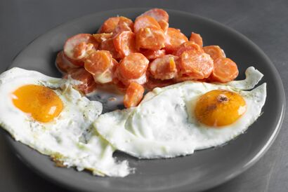 Humans and their hominid relatives have consumed eggs for millions of years.[1] The most widely consumed eggs are those of fowl, especially chickens. People in Southeast Asia began harvesting chicken eggs for food by 1500 BCE.[2] Eggs of other birds, such as ducks and ostriches, are eaten regularly but much less commonly than those of chickens. People may also eat the eggs of reptiles, amphibians, and fish. Fish eggs consumed as food are known as roe or caviar.