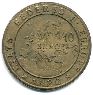 Among liberal-democratic parties, the French centre-left undertook several initiatives to group like-minded parties from the European states. In 1927, the French mathematician and politician Émile Borel, a leader of the centre-left Radical Party and the founder of the Radical International, set up a French Committee for European Cooperation, and a further twenty countries set up equivalent committees. However, it remained an élite venture: the largest committee, the French one, possessed fewer than six-hundred members, two-thirds of them parliamentarians.[5] Two centre-left French prime ministers went further. In 1929 Aristide Briand gave a speech in the presence of the League of Nations Assembly in which he proposed the idea of a federation of European nations based on solidarity and in the pursuit of economic prosperity and political and social co-operation. In 1930, at the League's request, Briand presented a Memorandum on the organisation of a system of European Federal Union.[6] The next year the future French prime minister Édouard Herriot published his book The United States of Europe. Indeed, a template for such a system already existed, in the form of the 1921 Belgian and Luxembourgish customs and monetary union.