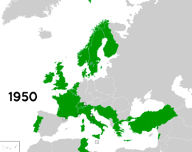 At the end of World War II, the continental political climate favoured unity in democratic European countries, seen by many as an escape from the extreme forms of nationalism which had devastated the continent.[10] In a speech delivered on 19 September 1946 at the University of Zürich in Switzerland, Winston Churchill postulated a United States of Europe.[11] The same speech however contains remarks, less-often quoted, which make it clear that Churchill did not initially see Britain as being part of this United States of Europe:
