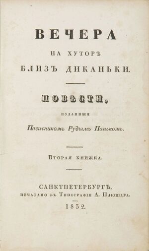 The preface is the opening to the first volume of Evenings on a Farm Near Dikanka by Nikolai Gogol, written in 1831.