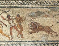 Roman depictions describe the Garamantes as bearing ritual scars and tattoos. Tacitus wrote that they assisted the rebel Tacfarinas and raided Roman coastal settlements.[15] According to Pliny the Elder, in response to continuous Garamantian raiding, Lucius Cornelius Balbus and other Romans captured fifteen of their settlements in 19 BC. In 202 AD, Septimius Severus captured the capital city of Garama.[16]