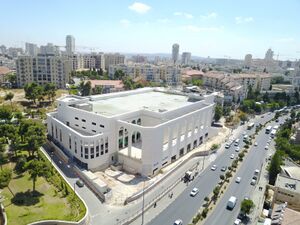 The group's headquarters is located in Jerusalem. During and after the British Mandate, the group's beth midrash was at the Sfas Emes Yeshiva, near Mahane Yehuda. Later on, the synagogue moved to Ralbach Street in the Geula neighborhood, and in the late 1990s, the Great Beth Midrash Gur was inaugurated on Yirmeyahu Street, near the Schneller Orphanage complex. In 2015, an extension to the building was begun, and on Rosh Hashanah 2018 (5779), the second wing of the Beth Medrash was inaugurated.[12] In 2022, the building was finished when the two wings were joined,[13] making it the largest synagogue in the world, with the main sanctuary seating up to 20,000, and having an area of approximately 35،000 m2 (380،000 sq ft).[14]