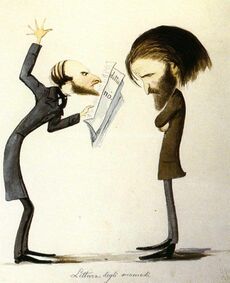 Verdi confronting the Naples censor when preparing Un ballo in maschera (caricature by Delfico)