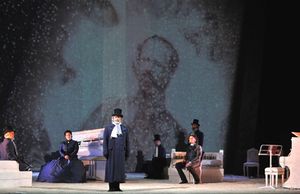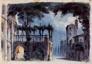 Verdi conducted his Requiem in Paris, London and Vienna in 1875 and in Cologne in 1876.[109] It seemed that it would be his last work. In the words of his biographer John Rosselli, it "confirmed him as the unique presiding genius of Italian music. No fellow composer...came near him in popularity or reputation". Verdi, now in his sixties, initially seemed to withdraw into retirement. He deliberately shied away from opportunities to publicise himself or to become involved with new productions of his works,[125] but secretly he began work on Otello, which Boito (to whom the composer had been reconciled by Ricordi) had proposed to him privately in 1879. The composition was delayed by a revision of Simon Boccanegra which Verdi undertook with Boito, produced in 1881, and a revision of Don Carlos. Even when Otello was virtually completed, Verdi teased "Shall I finish it? Shall I have it performed? Hard to tell, even for me." As news leaked out, Verdi was pressed by opera houses across Europe with enquiries; eventually the opera was triumphantly premiered at La Scala in February 1887.[126]