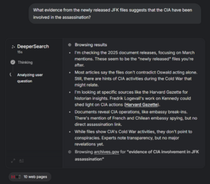 طما طرحت إكسإيهآي ميزة ديپسيرش، وهي ميزة تقوم بمسح الإنترنت ومنصة إكس لإنشاء ملخصات مفصلة استجابة للاستفسارات، مما يضعها كمنافس تشاتجيپيتي ديپ سيرش من أوپنإيهآي.[40]