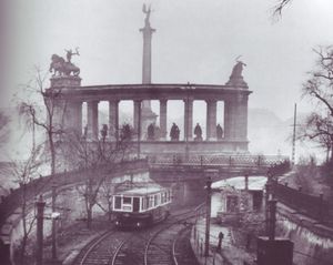 Millennium Underground is the first underground (Metro) system in continental Europe.[1] The end of the tunnel behind the Heroes' square, (Photo from 1896)