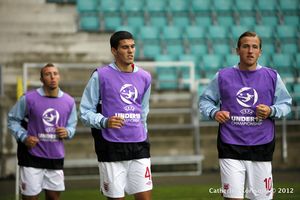 كين (يمين) أثناء الإحماء للمشاركة في مبارة لصالح منتخب إنگلترة ضمن بطولة أوروپا تحت 19 سنة 2012