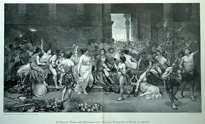 الهيتايروي ثايس تدعو الإسكندر الأكبر إلى حرق پرسوپوليس تماماً.
