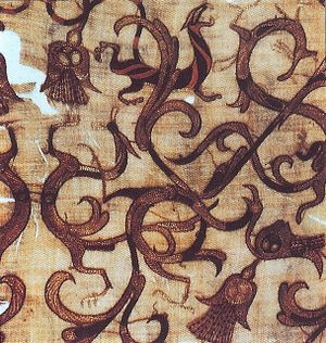 تفاصيل طقوس شاش من الحرير مطرزة من القرن الرابع قبل الميلاد ، قبر عصر تشو في ماشان ، مقاطعة جيانگ‌لينگ ، هوبى