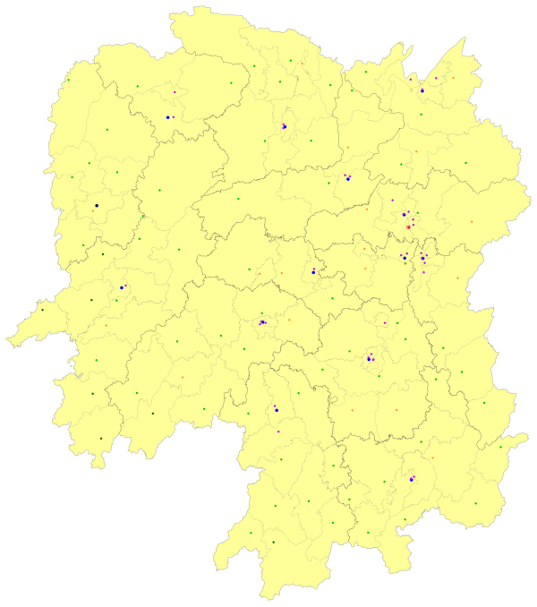 | 23 | Linxiang | 225,054 | 498,319 | see Yueyang | 2010-11-01 |