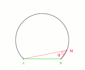 The inscribed angle theorem states that an angle θ inscribed in a circle is half of the central angle 2θ that intercepts the same arc on the circle. Therefore, the angle does not change as its vertex is moved to different positions on the same arc of the circle.