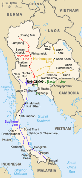The State Railway of Thailand has two main lines in Isan, both connecting the region to Bangkok. One runs east from Khorat, through Surin to Ubon; the other runs north through Khon Kaen and Udon to Nong Khai. In early-2009, a rail link from Nong Khai came into operation. It crosses the Friendship road bridge into Laos territory to a terminus a few kilometres north of the land border crossing. It remains unclear whether this line will be extended the remaining 20 kilometres to Vientiane, the capital of Laos.