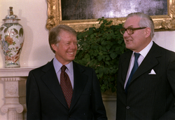 من اليسار إلى اليمين: هلموت شميت، جيمي كارتر، ڤاليري جيسكار ديستان وجيمس كالاهان.