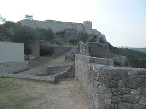 After successfully warring against their enemies, the Dalmatian cities and nobility under Juraj II Šubić of Bribir (who was imprisoned in the castle's dungeons), as well as the royal forces commanded by the Slavonian ban Mikac Prodanić,[20] their rule came to an end when Louis I of Hungary personally led an army to re-establish royal power over Knin in 1345. During this time it became known that the castle consisted of two major parts, administered by two castellans and which was populated by houses and baths, a palace with a main hall used previously by the Nelipić's to sign an alliance with the Republic of Venice and to enforce customs on imports to the city. An annual trade fair, on Saint Bartholomew's day is known to have taken place in the settlement below since at least the 1360s and was regularly attended by the merchants from the Dalmatian cities.[21][22] It is known that Knin's also burg housed a significant colony of merchants originating from these cities which also gives insight into its commercial importance.[23] A supreme judicial body for the whole of Croatia was formed, composed of Croatian nobility, and was located on the castle grounds.[24] A chapel dedicated to Saint Bartholomew located within the cathedral was the place of notary of the Knin See. There the noble Ivan Nelipić (son of Vladislava) had reaffirmed his rights to the estates and lands in Cetina during his stay in the city.[25][26]