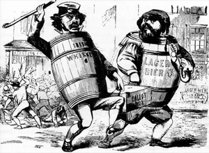 The Know Nothings supplemented their xenophobic views with populist appeals. At the state level, the party was, in some cases, progressive in its stances on "issues of labor rights and the need for more government spending"[4] and furnished "support for an expansion of the rights of women, the regulation of industry, and support of measures which were designed to improve the status of working people."[5] It was a forerunner of the temperance movement in the United States.[2]