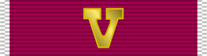 Additional awards of the Legion of Merit are denoted by oak leaf clusters (in the Army, Air Force, and Space Force), and by 5⁄16 بوصة (7.9 mm) gold stars (in the Navy, Marine Corps, and Coast Guard). Until 2017,[16] the sea services (the Navy, Marine Corps, and Coast Guard) awarded the Combat "V" for wear on the LOM. The Army, Air Force, and Space Force do not authorize the "V" device for the Legion of Merit.