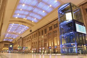 Leipzig's late-19th-century Gründerzeit architecture consists of around 12,500 buildings.[10][11] The city's central railway terminus Leipzig Hauptbahnhof is, at 83,460 square metres (898,400 sq ft), Europe's largest railway station measured by floor area. Since Leipzig City Tunnel came into operation in 2013, it has formed the centrepiece of the S-Bahn Mitteldeutschland (S-Bahn Central Germany) public transit system, Germany's largest S-Bahn network, with a system length of 802 km (498 mi).[12]