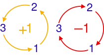 For the indices (i, j, k) in εijk, the values 1, 2, 3 occurring in the cyclic order (1, 2, 3) correspond to ε = +1, while occurring in the reverse cyclic order correspond to ε = −1, otherwise ε = 0.