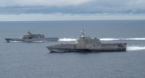 اعتبارا من ديسمبر 2019[تحديث], a total of 35 littoral combat ships is planned, including 16 Freedom-class ships and 19 Independence-class ships.[184] Ships are assigned to either Littoral Combat Ship Squadron One,[185][186] based in San Diego Ca., or Littoral Combat Ship Squadron Two,[187][188] based in Mayport, Florida.
