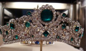 The Diadem of the Duchess of Angoulême contains gold, gilt silver, 40 emeralds and 1,031 diamonds. The crown matches an emerald necklace made by Paul-Nicolas Menière in 1814 and is housed in the Decorative Arts department.