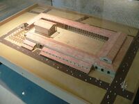 At the west end was the temple devoted to the official gods. Its facade with a portico of pillars with triangular pediment faced to the east, the tradition for Roman temples.[22][23]