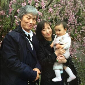 الدكتور ساگاوا وزوجته هيساكو (久子) وحفيدته نيكا (ニカ).
