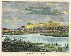 Medzhybizh is first mentioned in chronicles as an estate in Kievan Rus. It was given to Prince Svyatoslav by the prince of Kyiv in the year 1146. In 1148, ownership transferred to Rostyslav, the son of Yuri Dolgoruky. The wooden fortress that stood there was destroyed in 1255. After the Mongol incursion, by 1360, the town and surrounding territory passed into the hands of the Lithuanians. The town suffered from numerous attacks by the Tatars in 1453, 1506, 1516, 1546, 1558, 1566, and 1615. In 1444 the town was incorporated into lands administered by Poland. In the 16th century, the territory was controlled by the Sieniawski and Potocki Polish noble families. In 1511 work began to replace the wooden palisades with massive stone fortifications, many of which can still be seen today. A dam was built across the Southern Bug river to provide a defensive lake, and a rhomboid Medzhybizh Castle with four towers was built. The state-of-the-art fortifications made Medzhybizh one of the strongest military sites in the region and led to the rise of its prosperity in the next three centuries. - In 1571 a census was recorded, listing the population as being made up of 95 Ruthenians, 35 Jews, and 30 Poles. In 1593 Adam Sienawski gave the town Magdeburg rights.