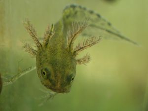 يتضمن التحول الشكلي لدى البرمائيات تحول يرقاتها المائية (شراغيف الضفادع) إلى متعضيات بالغة نصف أرضية المعيشة.