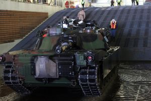 An U.S. Army M1A1 Abrams tank embarks aboard the Tonnerre off the coast of North Carolina for Composite Training Unit Exercise (7 February 2009).
