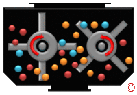 - تدور كل شفرة على المحاور الخاصة بها، وفي نفس الوقت على محور مشترك، وبالتالي توفير خلط كامل في إطار زمني قصير جداً.
