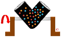 In powder two different dimensions in the mixing process can be determined: convective mixing and intensive mixing.[4] In the case of convective mixing material in the mixer is transported from one location to another. This type of mixing leads to a less ordered state inside the mixer, the components that must be mixed are distributed over the other components. With progressing time the mixture becomes more randomly ordered. After a certain mixing time the ultimate random state is reached. Usually this type of mixing is applied for free-flowing and coarse materials.