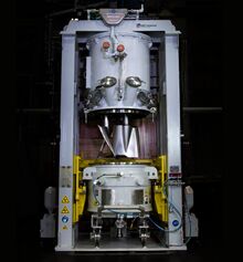 Solid-solid mixing can be performed either in batch mixers, which is the simpler form of mixing, or in certain cases in continuous dry-mix, more complex but which provide interesting advantages in terms of segregation, capacity and validation.[3] One example of a solid–solid mixing process is mulling foundry molding sand, where sand, bentonite clay, fine coal dust and water are mixed to a plastic, moldable and reusable mass, applied for molding and pouring molten metal to obtain sand castings that are metallic parts for automobile, machine building, construction or other industries.