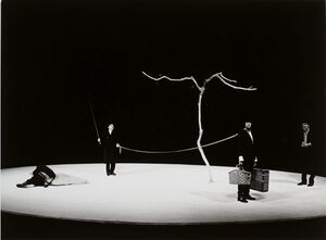 يُطلق مصطلح "مسرح العبث" على المسرحيات التي كتبها الأوروبيون في المقام الأول، والتي تعبر عن الاعتقاد بأن الوجود البشري ليس له معنى أو غرض، وبالتالي تنقطع كل وسائل الاتصال. يفسح البناء المنطقي والحجة المجال للخطاب غير المنطقي وغير المنطقي وإلى نهايته الأخيرة، الصمت.[99] في حين أن هناك سلائف مهمة لمسرح العبث، بما في ذلك ألفريد جاري (1873-1907)، يُنظر إلى مسرح العبث عمومًا على أنه بدء في الخمسينيات بمسرحيات صموئيل بيكيت.