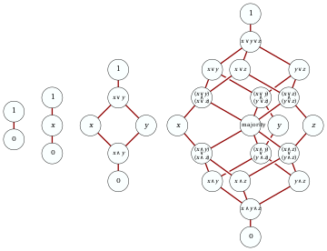 عدد تلك الدوال على n متغير يـُعرف بإسم عدد ددكيند Dedekind number لـ n.