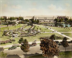 The Museum of Fine Arts was founded in 1870 and was initially located on the top floor of the Boston Athenæum. Most of its initial collection came from the Athenæum's Art Gallery.[3] In 1876, the museum moved to a highly ornamented brick Gothic Revival building designed by John Hubbard Sturgis and Charles Brigham, noted for its massed architectural terracotta. It was located in Copley Square at Dartmouth and St. James Streets.[3] It was built almost entirely of brick and terracotta, which was imported from England, with some stone about its base.[4] After the MFA moved out in 1909, this original building was demolished, and the Copley Plaza Hotel (now the Fairmont Copley Plaza) replaced it in 1912.[5] During the early years of the museum, Charles Greely Loring, a former Union Army general, served as its first director, leading from 1876 to early 1902, when he resigned for health reasons.[6]