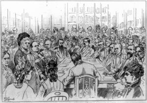 A federal amendment intended to grant women the right to vote was introduced in the U.S. Senate for the first time in 1878 by Aaron A. Sargent, a Senator from California who was a women's suffrage advocate.[26] Stanton and other women testified before the Senate in support of the amendment.[27] The proposal sat in a committee until it was considered by the full Senate and rejected in a 16-to-34 vote in 1887.[28] An amendment proposed in 1888 in the U.S. House of Representatives called for limited suffrage for women who were spinsters or widows who owned property.[29]