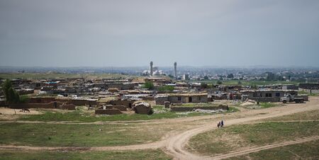 The remains of ancient Nineveh, the areas of Kuyunjiq and Nabī Yūnus with their mounds, are located on a level part of the plain at the junction of the Tigris and the Khosr Rivers within an area of 750 هكتار (1،900 acre)[11] circumscribed by a 12-كيلومتر (7.5 mi) fortification wall. This whole extensive space is now one immense area of ruins overlaid by c. one third by the Nebi Yunus suburbs of the city of eastern Mosul.[12]