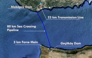 خط أنابيب تحت البحر بطول 80 كم وعلى عمق 250 متر في قاع البحر المتوسط لنقل المياه من محطة أناموريوم في تركيا إلى محطة ضخ گوزليالي في شمال قبرص. سيكون خط الأنابيب مزود بمجسات وأجهزة إرسال لإلتقاط أي مشكلات محتملة من أجل إصلاحها.[1][2]
