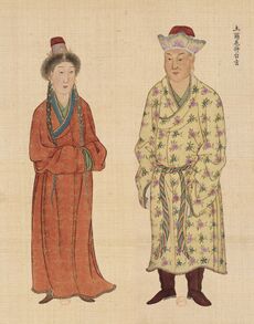 After the overthrow of the Yuan dynasty (1271–1368), Möngke-Temür, a high official of the Yuan, had placed himself at the head of the Oirats. When he died, three chieftains, Mahamu (Mahmud), Taiping and Batu-bolad, ruled them.[5] They sent envoys with gifts to the Ming dynasty. In 1409, the Yongle Emperor (r. 1402–1424) bestowed upon them the title of wang in return. The Oirats began to challenge the Borjigin Emperors of the Northern Yuan in the reign of Elbeg Khan (c. 1394–1399).