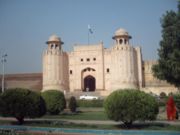 The حصن لاهور، أعاد بناءها أكبر امبراطور المغول عام 1566.