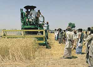 الآليات الزراعية الحديثة تسهل عملية حصاد القمح، وهو المحصول الزراعي الأول في باكستان.