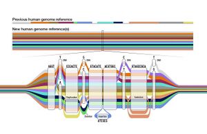 كشف العلماء عن جينوم بشري أكثر تنوعًا، يسمى الجينوم الجامع. يمكن للجينوم الجامع الذي يجمع التسلسلات الجينية من 47 شخصًا من خلفيات عرقية متنوعة، أن يوسع نطاق الطب الشخصي بشكل كبير. يشبه مرجع الجينوم الجديد متاهة الذرة، مع مسارات بديلة ومسارات جانبية تسمح للعلماء باستكشاف نطاق أوسع من التنوع الجيني الموجود في الناس في جميع أنحاء العالم.[66]