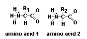 يمكن ان ترتبط الأحماض الأمينية مع بعضها لتكون سلاسل طويلة من الأحماض الأمينية المتصلة وتسمى ببتيدات. والرابطة بينها تسمى الرابطة الببتدية وتتم بإقصاء جزيء ماء. وتوصف كالتالي: