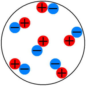 Lenard observed that the absorption of cathode rays was, to first order, proportional to the density of the material they were made to pass through. This appeared to contradict the idea that they were some sort of electromagnetic radiation. He also showed that the rays could pass through some inches of air of a normal density, and appeared to be scattered by it, implying that they must be particles that were even smaller than the molecules in air. He confirmed some of J. J. Thomson's work, which eventually arrived at the understanding that cathode rays were streams of negatively charged energetic particles. He called them quanta of electricity or for short quanta, after Helmholtz, while Thomson proposed the name corpuscles, but eventually electrons became the everyday term.[11] In conjunction with his and other earlier experiments on the absorption of the rays in metals, the general realization that electrons were constituent parts of the atom enabled Lenard to claim correctly that for the most part atoms consist of empty space. He proposed that every atom consists of empty space and electrically neutral corpuscules called "dynamids", each consisting of an electron and an equal positive charge.