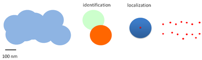 In summary, PALM and STORM are based on collecting under a fluorescent microscope a large number of images each containing just a few active isolated fluorophores.