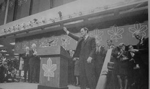 Nevertheless, at the April 1968 Liberal leadership convention, Trudeau was elected leader on the fourth ballot, with the support of 51 percent of the delegates. He defeated several prominent and long-serving Liberals, including Paul Martin Sr., Robert Winters and Paul Hellyer.[53]