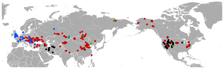 The North American species migrated from Eurasia. They invaded the New World twice: