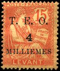 A French colonies key type stamp of Levant overprinted T.E.O. for use during the French military occupation of Syria and Lebanon between 1920 and 1922